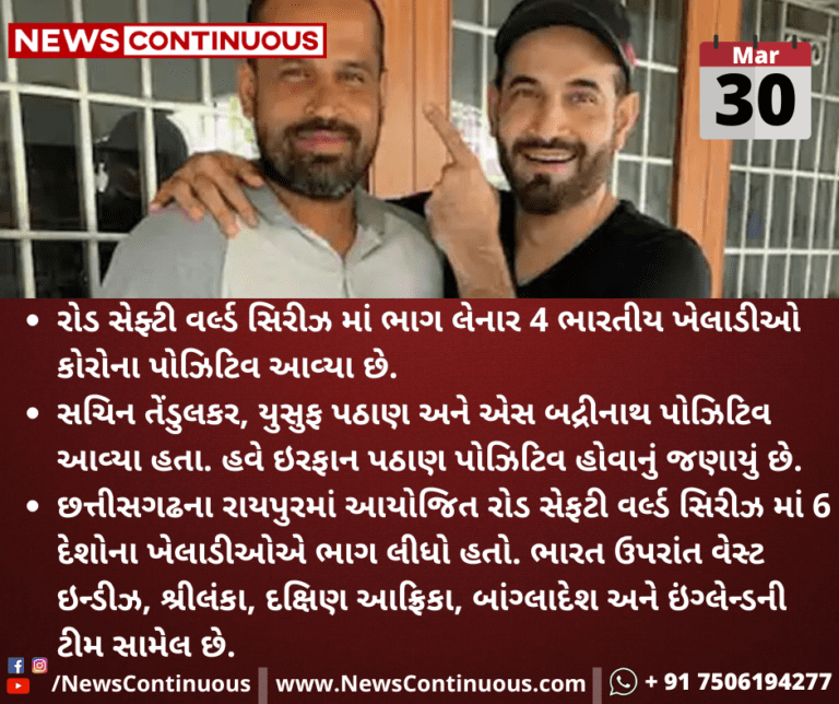 - સચિન તેંડુલકર, યુસુફ પઠાણ અને એસ બદ્રીનાથ પોઝિટિવ આવ્યા હતા. હવે ઇરફાન પઠાણ પોઝિટિવ હોવાનું જણાયું છે.