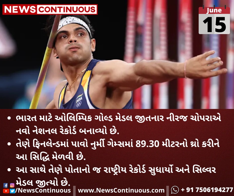 અગાઉ નીરજે ટોક્યો ઓલિમ્પિક(Tokyo Olympics) દરમિયાન 87.58 મીટરના થ્રો સાથે રાષ્ટ્રીય રેકોર્ડ બનાવ્યો હતો.