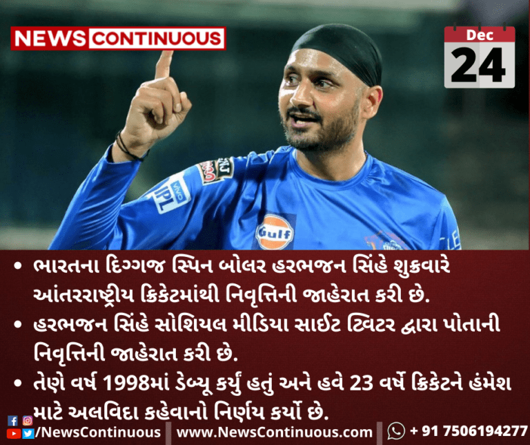ભારતના દિગ્ગજ સ્પિન બોલર હરભજન સિંહે શુક્રવારે આંતરરાષ્ટ્રીય ક્રિકેટમાંથી નિવૃત્તિની જાહેરાત કરી છે.