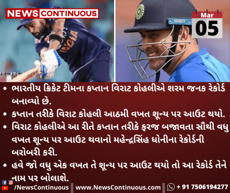 ભારતીય ક્રિકેટ ટીમના કપ્તાન વિરાટ કોહલીએ શરમ જનક રેકોર્ડ બનાવ્યો છે.
