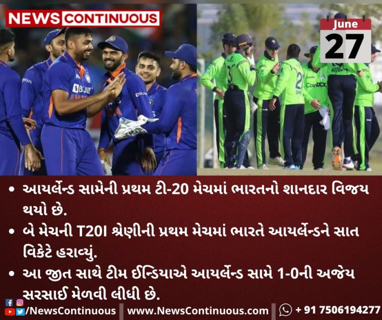 આયર્લેન્ડ(Ireland) સામેની પ્રથમ ટી-20 મેચમાં ભારત(India)નો શાનદાર વિજય થયો છે.