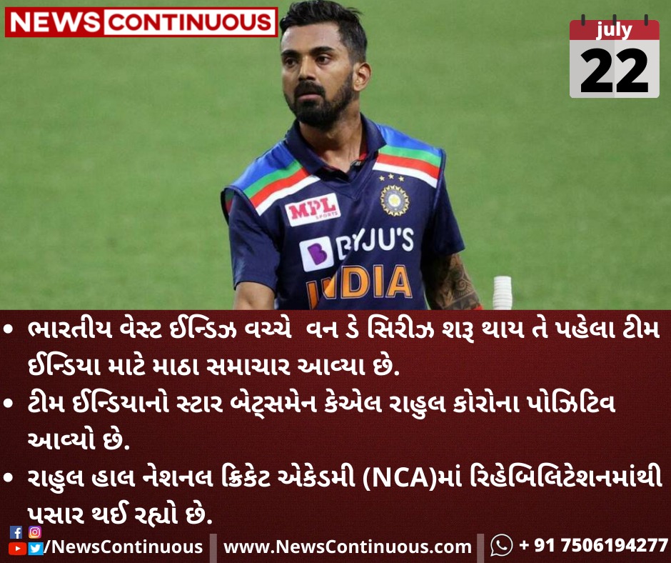 ટીમ ઈન્ડિયાનો સ્ટાર બેટ્સમેન(Star batsman) કેએલ રાહુલ(KL Rahul) કોરોના પોઝિટિવ(Corona positive) આવ્યો છે.