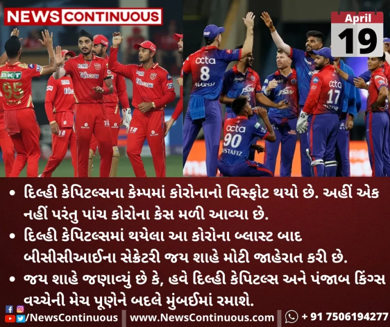જય શાહે જણાવ્યું છે કે, હવે દિલ્હી કેપિટલ્સ અને પંજાબ કિંગ્સ વચ્ચેની(Punjab kings) મેચ પૂણેને(Pune) બદલે મુંબઈમાં(Mumbai) રમાશે.