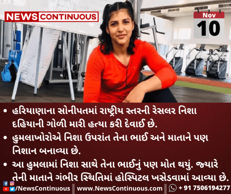 હરિયાણાના સોનીપતમાં રાષ્ટ્રીય સ્તરની રેસલર નિશા દહિયાની ગોળી મારી હત્યા કરી દેવાઈ છે.