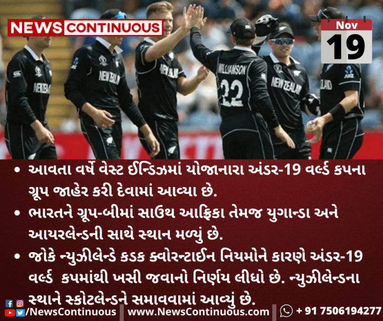 આવતા વર્ષે વેસ્ટ ઈન્ડિઝમાં યોજાનારા અંડર-19 વર્લ્ડ કપના ગ્રૂપ જાહેર કરી દેવામાં આવ્યા છે.