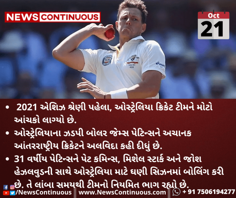 ઓસ્ટ્રેલિયાના ઝડપી બોલર જેમ્સ પેટિન્સને અચાનક આંતરરાષ્ટ્રીય ક્રિકેટને અલવિદા કહી દીધું છે.