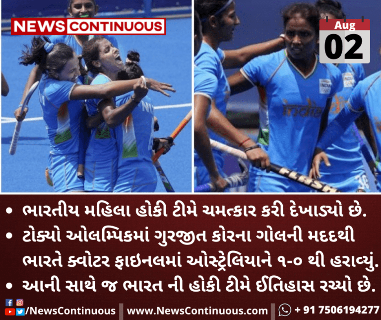 ટોક્યો ઓલમ્પિકમાં ગુરજીત કોરના ગોલની મદદથી ભારતે ક્વોટર ફાઇનલમાં ઓસ્ટ્રેલિયાને ૧-૦ થી હરાવ્યું.