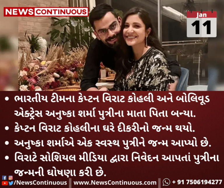 ભારતીય ટીમના કેપ્ટન વિરાટ કોહલી અને બોલિવૂડ એક્ટ્રેસ અનુષ્કા શર્મા પુત્રીના માતા પિતા બન્યા.