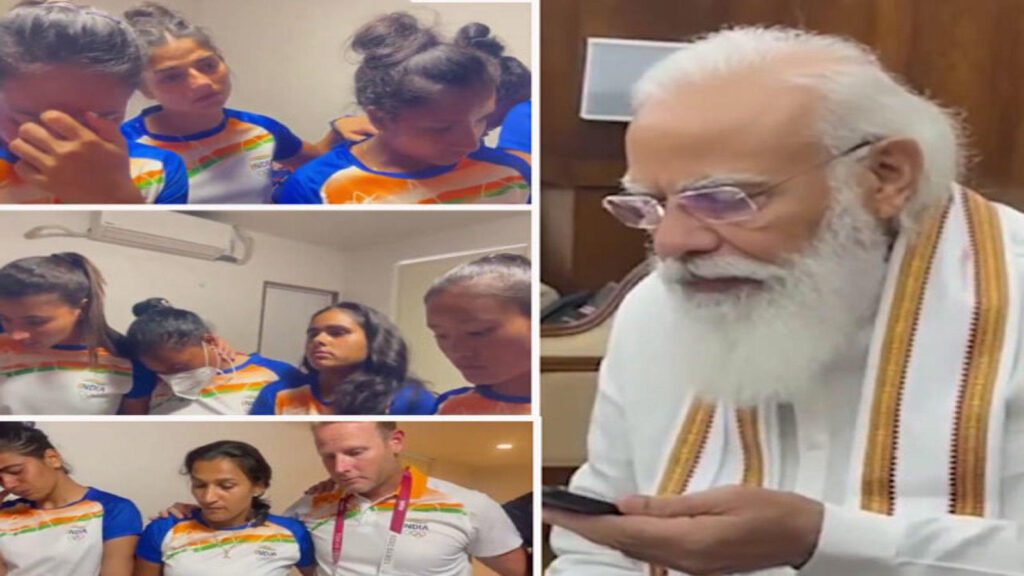 ટોક્યો ઑલિમ્પિકમાં ભારતીય મહિલા હૉકી ટીમ માટે આજનો દિવસ નિરાશાજનક રહ્યો છે. ભારતીય મહિલા હૉકી ટીમનું બ્રોન્ઝ મેડલનું સપનું તૂટી ગયું છે. બ્રિટન સામેની હાર બાદ વડા પ્રધાન મોદીએ મહિલા હૉકી ટીમની ખેલાડીઓ અને કોચ સાથે ફોન પર વાત કરી હતી. વડા પ્રધાનનો અવાજ સાંભળ્યા બાદ કેટલીક ખેલાડીઓ ભાવુક થઈ ગઈ હતી, ત્યારે વડા પ્રધાન મોદીએ તેમનું મનોબળ વધારતાં કહ્યું હતું કે ટીમની ખેલાડીઓ દેશ માટે પ્રેરણા સમાન છે.