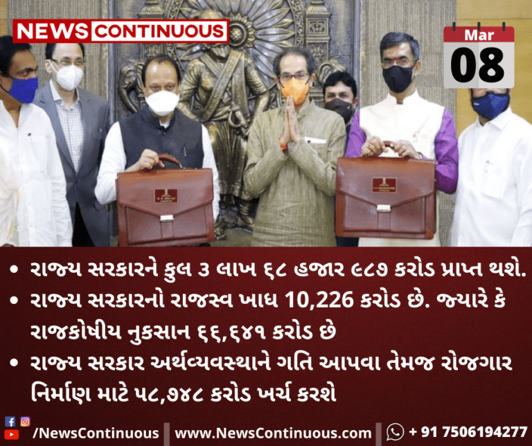રાજ્ય સરકારને કુલ ૩ લાખ ૬૮ હજાર ૯૮૭ કરોડ પ્રાપ્ત થશે.