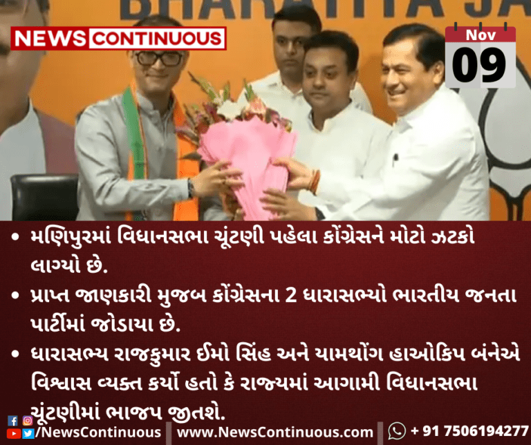 મણિપુરમાં વિધાનસભા ચૂંટણી પહેલા કોંગ્રેસને મોટો ઝટકો લાગ્યો છે.