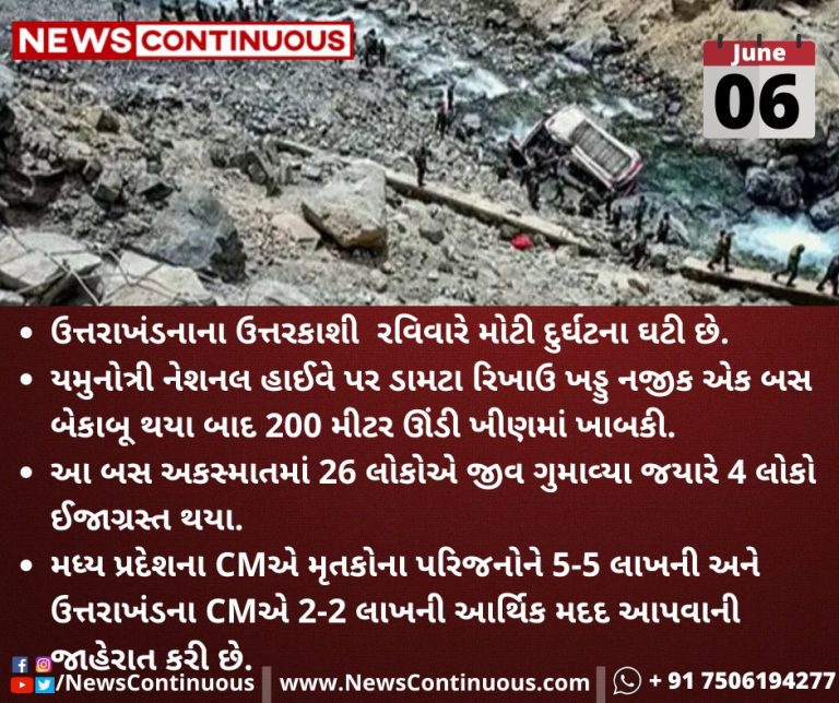 યમુનોત્રી નેશનલ હાઈવે (Yamunotri Highway) પર ડામટા રિખાઉ ખડ્ડુ નજીક એક બસ બેકાબૂ થયા બાદ 200 મીટર ઊંડી ખીણ(Bus Accident) માં ખાબકી.
