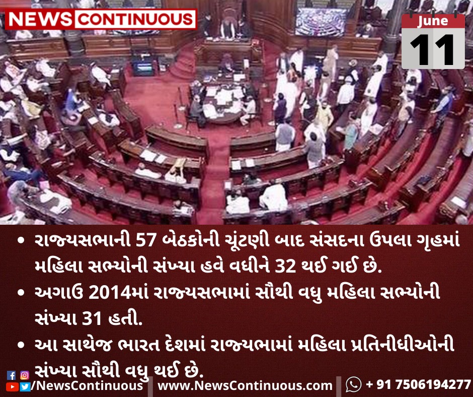 રાજ્યસભાની(Rajya Sabha) 57 બેઠકોની(Rajya Sabha seats) ચૂંટણી(Rajya Sabha election) બાદ સંસદના(parliament) ઉપલા ગૃહમાં મહિલા સભ્યોની(female members) સંખ્યા હવે વધીને 32 થઈ ગઈ છે.