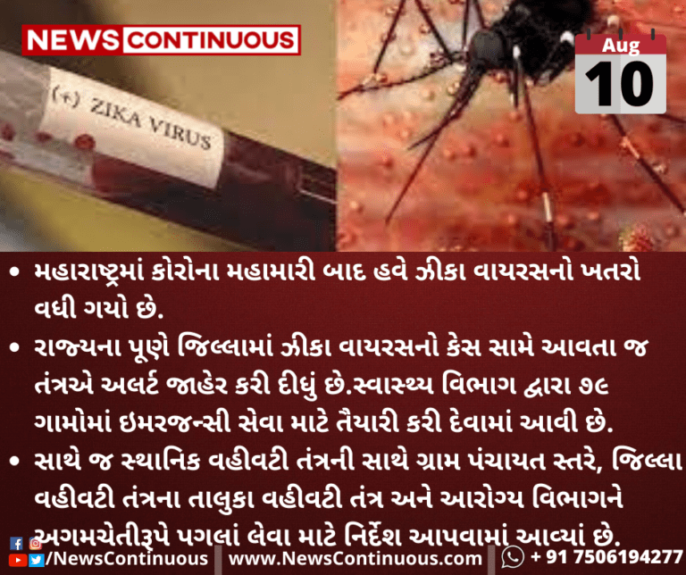 રાજ્યના પૂણે જિલ્લામાં ઝીકા વાયરસનો કેસ સામે આવતા જ તંત્રએ અલર્ટ જાહેર કરી દીધું છે.