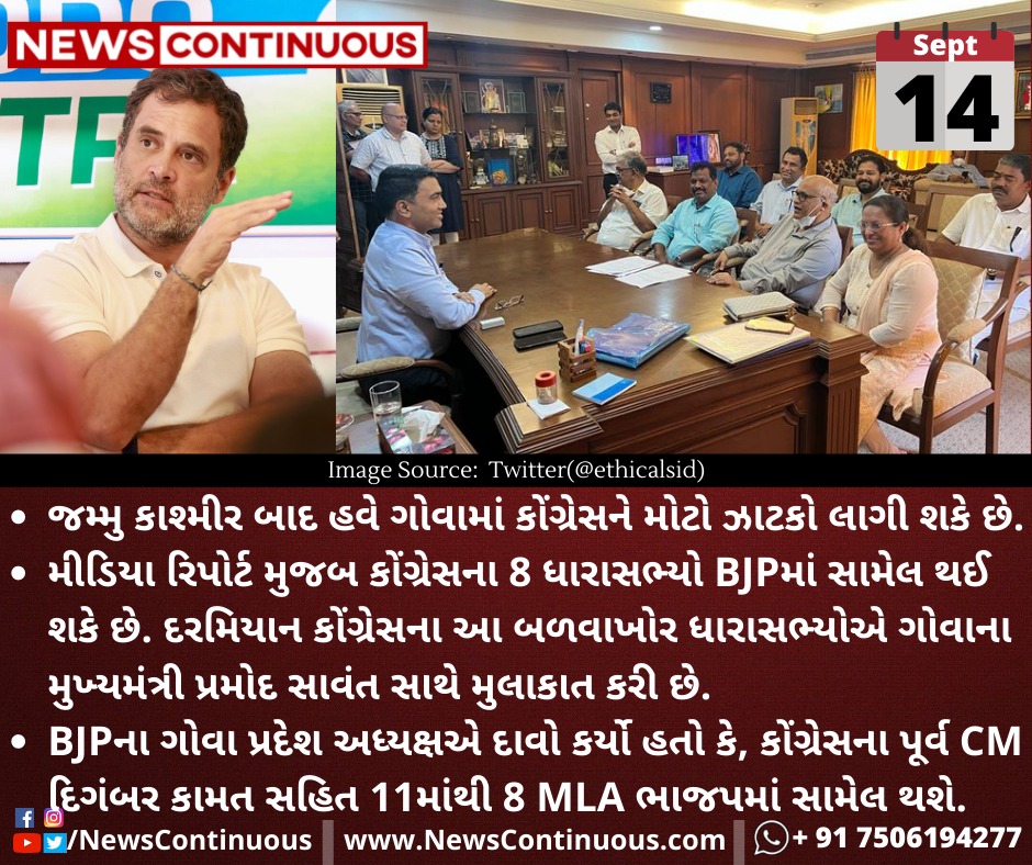 જમ્મુ કાશ્મીર બાદ હવે ગોવામાં કોંગ્રેસને મોટો ઝાટકો લાગી શકે છે.