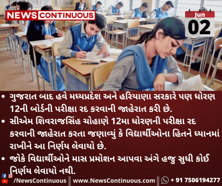 ગુજરાત બાદ હવે મધ્યપ્રદેશ અને હરિયાણા સરકારે પણ ધોરણ 12ની બોર્ડની પરીક્ષા રદ કરવાની જાહેરાત કરી છે.