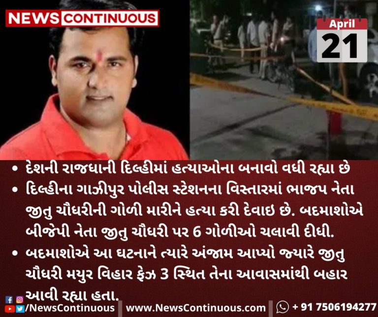 દિલ્હીના ગાઝીપુર પોલીસ સ્ટેશનના વિસ્તારમાં ભાજપ નેતા જીતુ ચૌધરી(Jitu Chaudhary)ની ગોળી મારીને હત્યા કરી દેવાઇ છે.