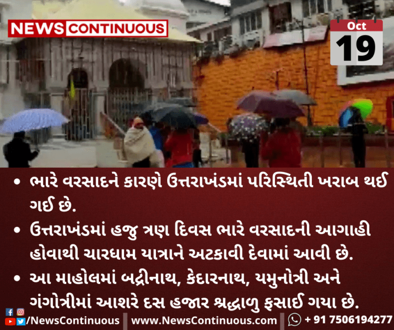 ઉત્તરાખંડમાં હજુ ત્રણ દિવસ ભારે વરસાદની આગાહી હોવાથી ચારધામ યાત્રાને અટકાવી દેવામાં આવી છે.