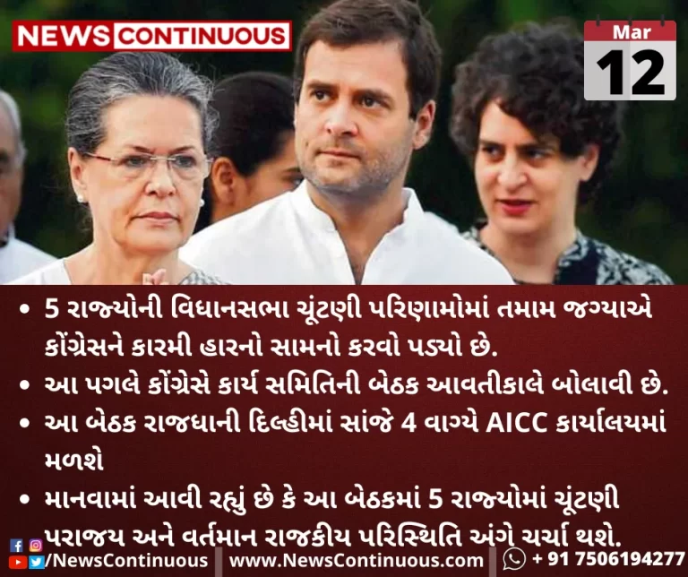 આ પગલે કોંગ્રેસે કાર્ય સમિતિની બેઠક આવતીકાલે બોલાવી છે.