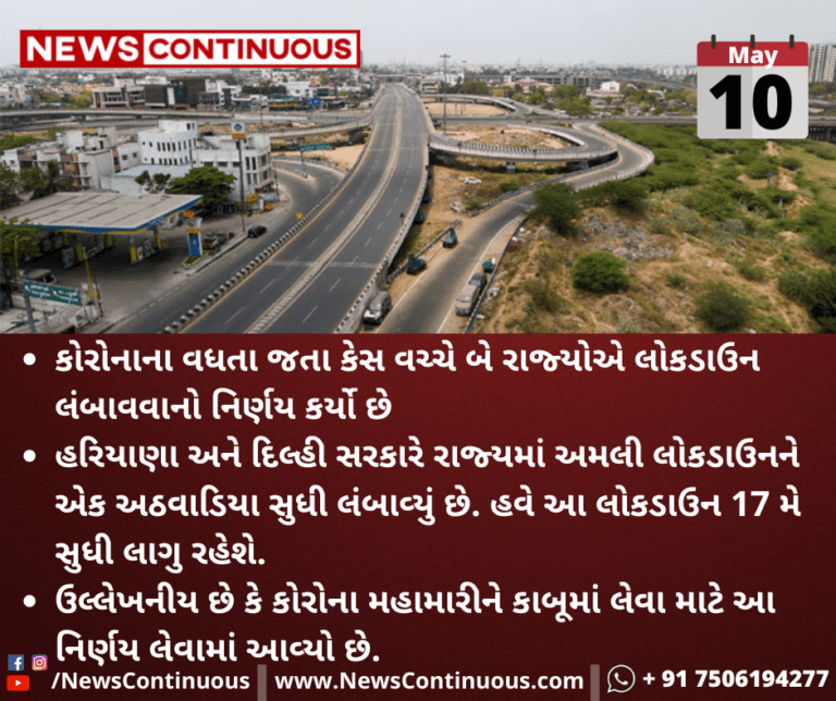 હરિયાણા અને દિલ્હી સરકારે રાજ્યમાં અમલી લોકડાઉનને એક અઠવાડિયા સુધી લંબાવ્યું છે. હવે આ લોકડાઉન 17 મે સુધી લાગુ રહેશે.