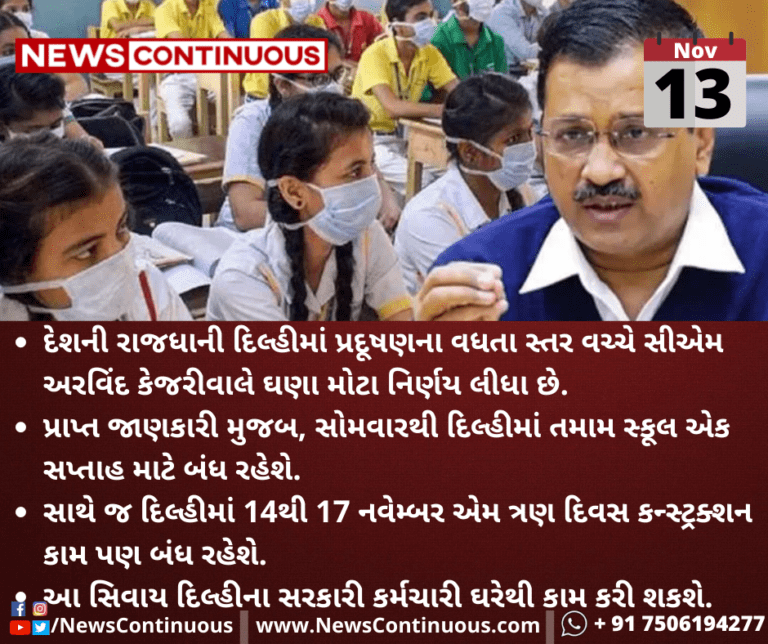 દેશની રાજધાની દિલ્હીમાં પ્રદૂષણના વધતા સ્તર વચ્ચે સીએમ અરવિંદ કેજરીવાલે ઘણા મોટા નિર્ણય લીધા છે.