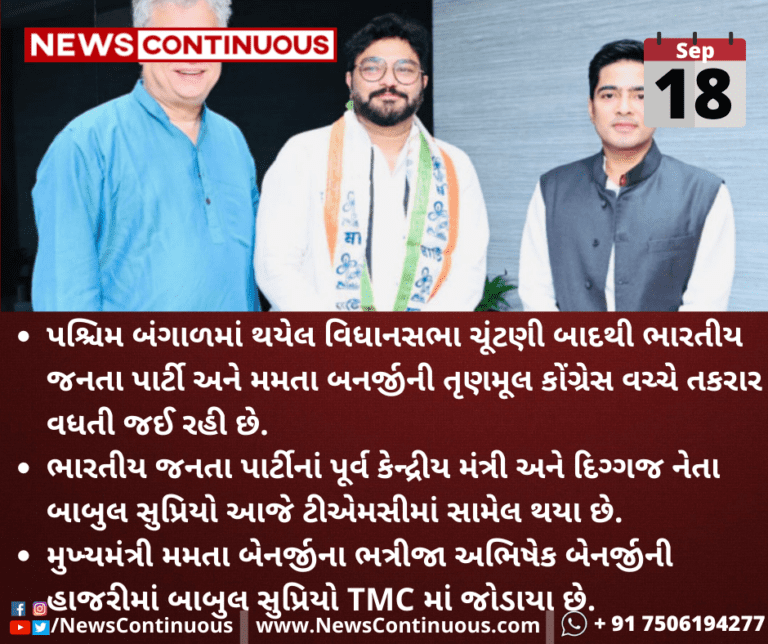 ભારતીય જનતા પાર્ટીનાં પૂર્વ કેન્દ્રીય મંત્રી અને દિગ્ગજ નેતા બાબુલ સુપ્રિયો આજે ટીએમસીમાં સામેલ થયા છે.