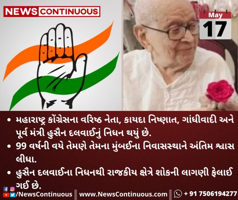 મહારાષ્ટ્ર કોંગ્રેસના વરિષ્ઠ નેતા, (Congress Leader) કાયદા નિષ્ણાત, ગાંધીવાદી અને પૂર્વ મંત્રી હુસૈન દલવાઈનું(Husain Dalwai) નિધન થયું છે.