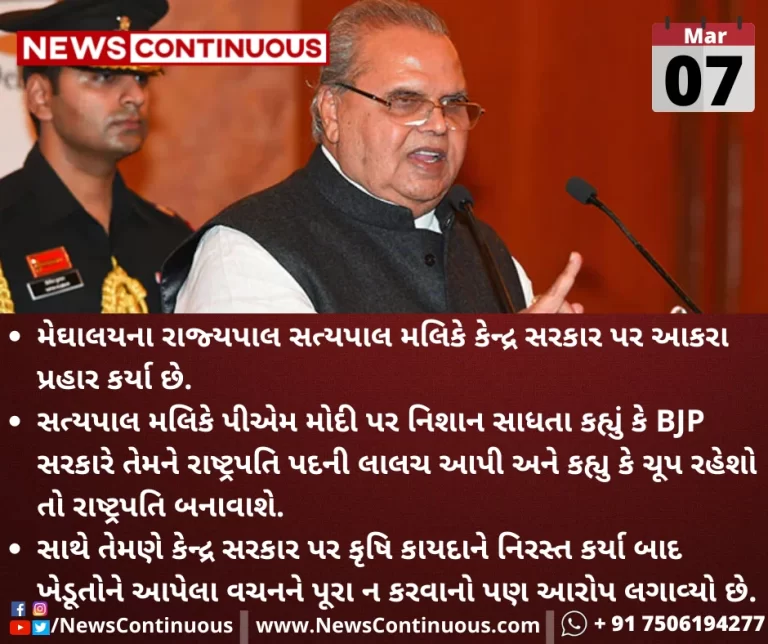 મેઘાલયના રાજ્યપાલ સત્યપાલ મલિકે કેન્દ્ર સરકાર પર આકરા પ્રહાર કર્યા છે.