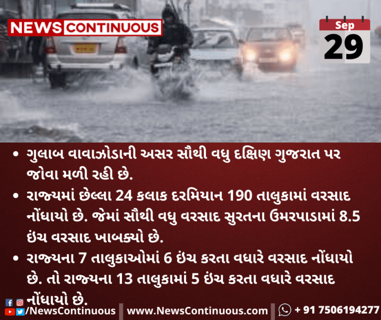 ગુલાબ વાવાઝોડાની અસર સૌથી વધુ દક્ષિણ ગુજરાત પર જોવા મળી રહી છે.