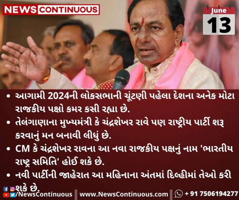 CM કે ચંદ્રશેખર રાવના આ નવા રાજકીય પક્ષનું નામ(Name of political party) 'ભારતીય રાષ્ટ્ર સમિતિ'(Bharatiya Rastra Samiti) હોઈ શકે છે.