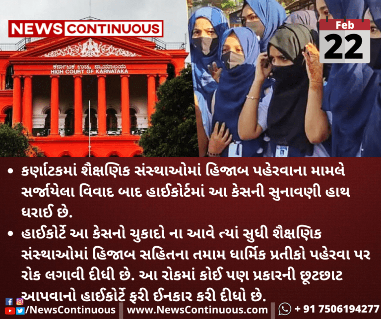 કર્ણાટકમાં શૈક્ષણિક સંસ્થાઓમાં હિજાબ પહેરવાના મામલે સર્જાયેલા વિવાદ બાદ હાઈકોર્ટમાં આ કેસની સુનાવણી હાથ ધરાઈ છે.