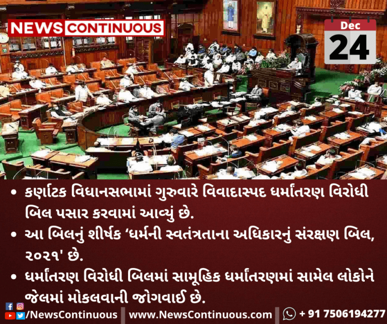 કર્ણાટક વિધાનસભામાં ગુરુવારે વિવાદાસ્પદ ધર્માંતરણ વિરોધી બિલ પસાર કરવામાં આવ્યું છે.