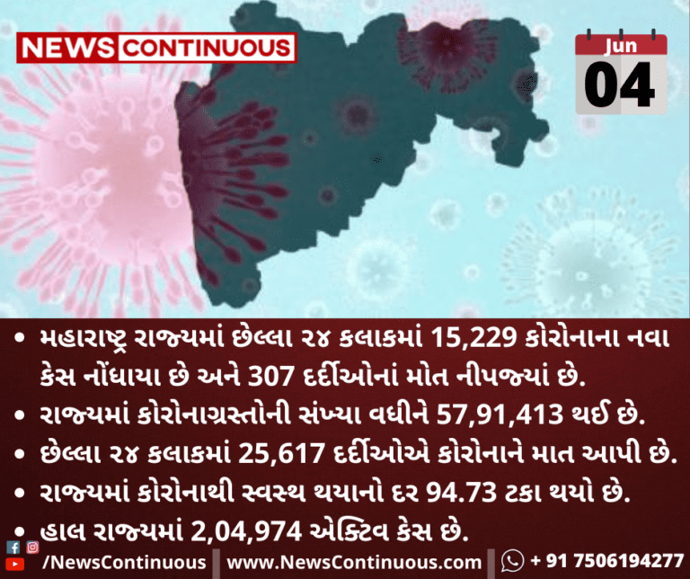 રાજ્યમાં કોરોનાગ્રસ્તોની સંખ્યા વધીને 57,91,413 થઈ છે.