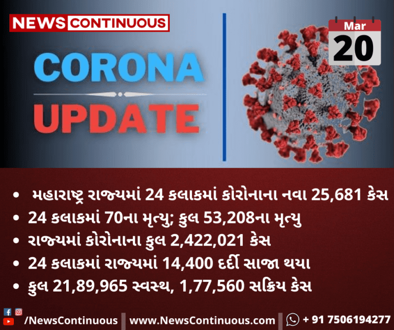 મહારાષ્ટ્ર રાજ્યમાં 24 કલાકમાં કોરોનાના નવા 25,681 કેસ