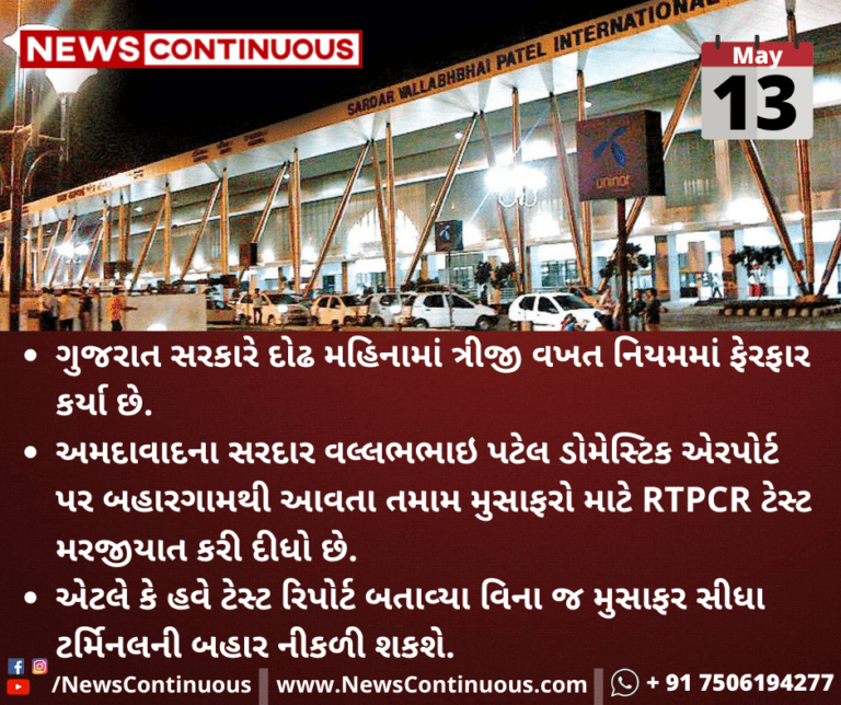 ઉલ્લેખનીય છે કે અમદાવાદ એરપોર્ટ અત્યાર સુધી બહારથી આવતા તમામ મુસાફરો 72 કલાક પહેલાનો RTPCR ટેસ્ટ ચેક કર્યા બાદ જ ટર્મિનલની બહાર નીકળવા માટે મંજૂરી આપવામાં આવતી હતી.