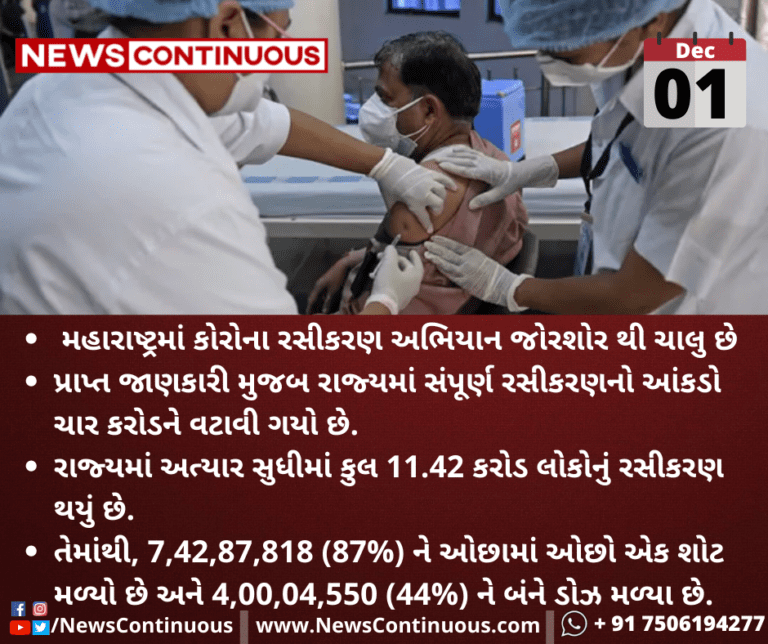 મહારાષ્ટ્રમાં કોરોના રસીકરણ અભિયાન જોરશોર થી ચાલુ છે