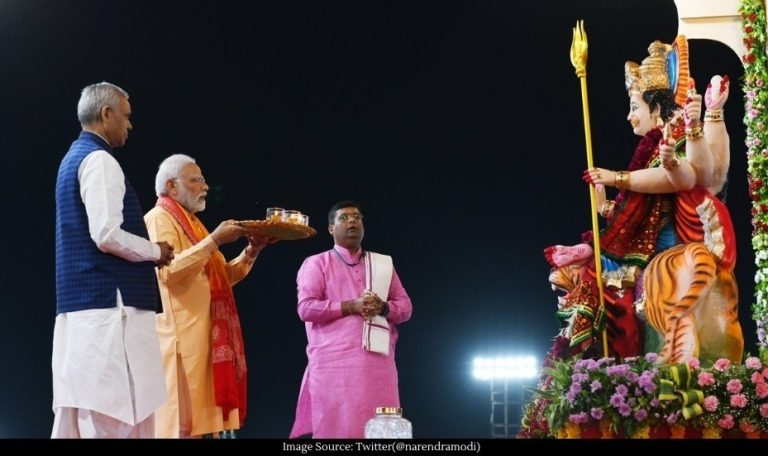 વડાપ્રધાન નરેન્દ્ર મોદી(Prime Minister Narendra Modi) ગુજરાત(Gujarat)ના પ્રવાસે છે અને રાજ્યની જનતાને અનેક ભેટો આપી રહ્યા છે. દરમિયાન ગઈકાલે રાત્રે પીએમ મોદી ગુજરાત સરકાર દ્વારા આયોજિત નવરાત્રી મહોત્સવ(Navratri)માં ભાગ લેવા માટે જીએમડીસી ગ્રાઉન્ડ(GMDC ground) પર પહોંચ્યા હતા, અહીં તેમણે મા અંબે(Maa Ambe)ની આરતી કરી હતી. તેમણે સ્થળ પર પરંપરાગત ગરબા નૃત્યની મજા માણી હતી. વડાપ્રધાન મોદીએ ત્યાં હાજર કેટલાક લોકો સાથે વાતચીત પણ કરી હતી.