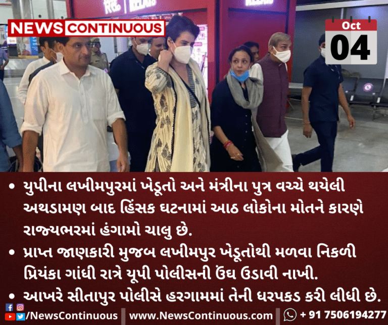 પ્રાપ્ત જાણકારી મુજબ લખીમપુર ખેડૂતોથી મળવા નિકળી પ્રિયંકા ગાંધી રાત્રે યૂપી પોલીસની ઉંઘ ઉડાવી નાખી.