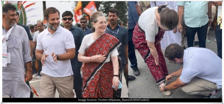 પદયાત્રા દરમિયાન રાહુલ ગાંધી(Rahul Gandhi) ક્યારેક તેમની માતા(mother)ના ખભા પર હાથ મૂકતા જોવા મળ્યા, તો ક્યારેક તેઓ તેમની માતા સોનિયા ગાંધીના બુટની દોરી(shoe laces) બાંધતા નજરે પડ્યા. સોનિયા ગાંધી(Sonia Gandhi)ના બૂટની દોરી બાંધી રહેલો ફોટો સોશિયલ મીડિયા(Social Media) પર ખૂબ વાયરલ થઈ રહ્યો છે. લોકો રાહુલ ગાંધીના વખાણ પણ કરી રહ્યા છે. હાલ આ દ્રશ્યના ફોટો અને વીડિયો સોશિયલ મીડિયામાં વાયરલ થઈ રહ્યો છે.