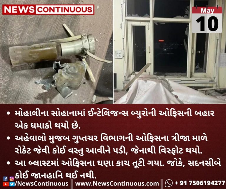 મોહાલીના(Mohali) સોહાનામાં(Sohana) ઈન્ટેલિજન્સ બ્યુરોની(Intelligence Bureau) ઓફિસની બહાર એક ધમાકો થયો છે.