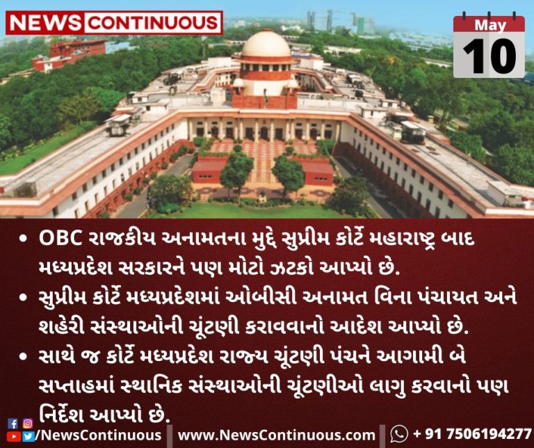 OBC રાજકીય અનામતના(OBC Political Reserves) મુદ્દે સુપ્રીમ કોર્ટે(Supreme court) મહારાષ્ટ્ર(Maharashtra) બાદ મધ્યપ્રદેશ સરકારને(madhya pradesh Govt) પણ મોટો ઝટકો આપ્યો છે.