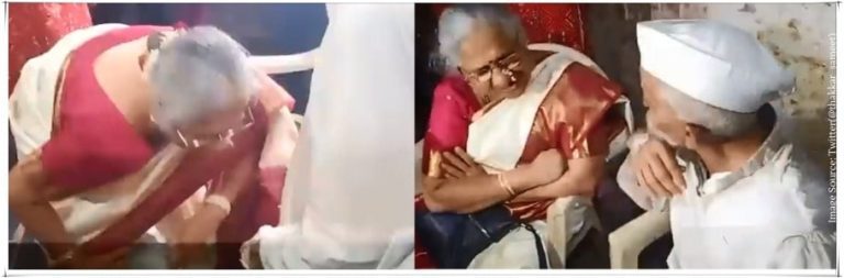 લેખિકા અને પરોપકારી સુધા મૂર્તિ(Sudha Murthy) નો મહારાષ્ટ્ર(Maharashtra) માં એક મીટિંગમાં જમણેરી જૂથના એક નેતાના પગને સ્પર્શ કરતો એક વીડિયો વાયરલ થઈ રહ્યો છે, જેના પર પ્રતિક્રિયા આવી રહી છે. વીડિયોમાં ઈન્ફોસિસના કો-ફાઉન્ડર નારાયણ મૂર્તિ(Narayan Murthy)ની પત્ની સુધા મૂર્તિ સંભાજી ભીડે(Sambhaji Bhide) ના પગ પડતા જોઈ શકાય છે. તાજેતરમાં ભીડેને રાજ્ય મહિલા સમિતિએ એક કેસ પર નોટિસ જારી કરી હતી. તેમણે મહિલા રિપોર્ટર સાથે વાત કરવાનો ઇનકાર કર્યો કારણ કે તેના કપાળ પર બિંદી નહોતી.