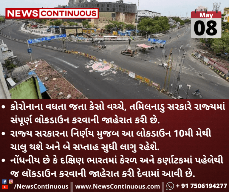 કોરોનાના વધતા જતા કેસો વચ્ચે, તમિલનાડુ સરકારે રાજ્યમાં સંપૂર્ણ લોકડાઉન કરવાની જાહેરાત કરી છે.
