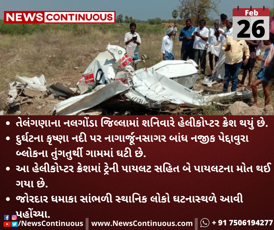તેલંગણાના નલગોંડા જિલ્લામાં શનિવારે હેલીકોપ્ટર ક્રેશ થઈ ગયું છે.