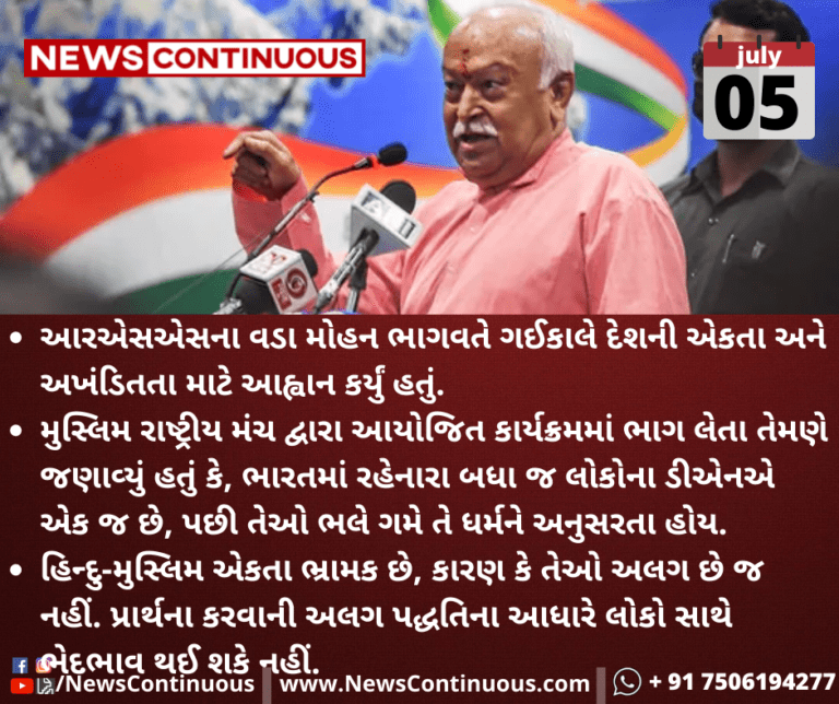 આરએસએસના વડા મોહન ભાગવતે ગઈકાલે દેશની એકતા અને અખંડિતતા માટે આહ્વાન કર્યું હતું.