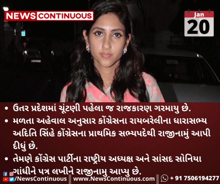મળતા અહેવાલ અનુસાર કોંગ્રેસના રાયબરેલીના ધારાસભ્ય અદિતિ સિંહે કોંગ્રેસના પ્રાથમિક સભ્યપદેથી રાજીનામું આપી દીધું છે.