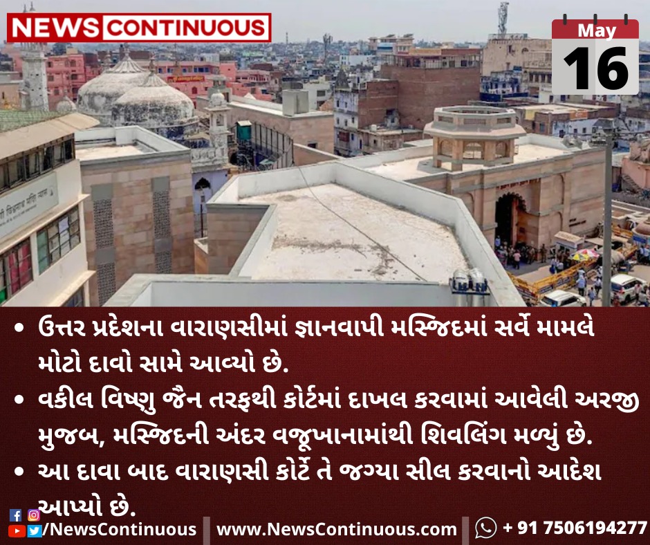 અત્રે જણાવવાનું કે જ્ઞાનવાપી મસ્જિદના સરવેનું કાર્ય આજે ત્રીજા દિવસે પૂર્ણ થયું છે.