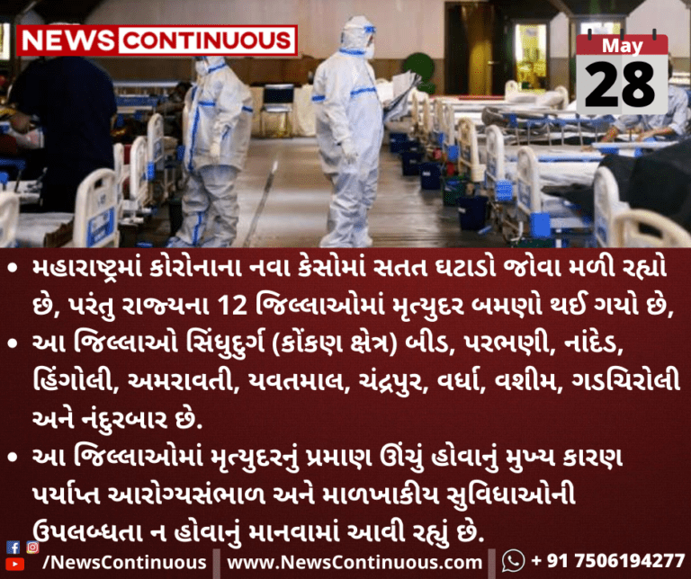 મહારાષ્ટ્રમાં કોરોનાના નવા કેસોમાં સતત ઘટાડો જોવા મળી રહ્યો છે, પરંતુ રાજ્યના 12 જિલ્લાઓમાં મૃત્યુદર બમણો થઈ ગયો છે.