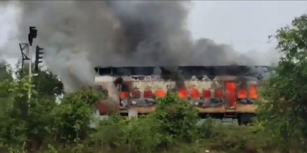 આગ લાગવાનું કારણ પણ હજી સ્પષ્ટ થયું નથી. એક ટ્વિટર યુઝરે વીડિયો મૂકી આ વાતની માહિતી આપી હતી. ટ્વીટમાં જણાવાયું છે કે આ ઘટના કોંકણના ઝરપ-કુડલ સેક્શનમાં બની હતી