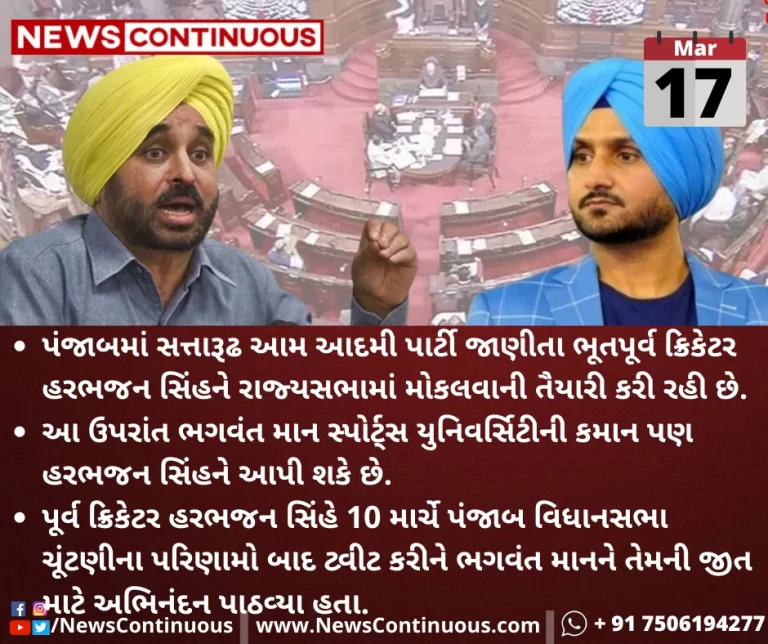 પંજાબમાં સત્તારૂઢ આમ આદમી પાર્ટી જાણીતા ભૂતપૂર્વ ક્રિકેટર હરભજન સિંહને રાજ્યસભામાં મોકલવાની તૈયારી કરી રહી છે.